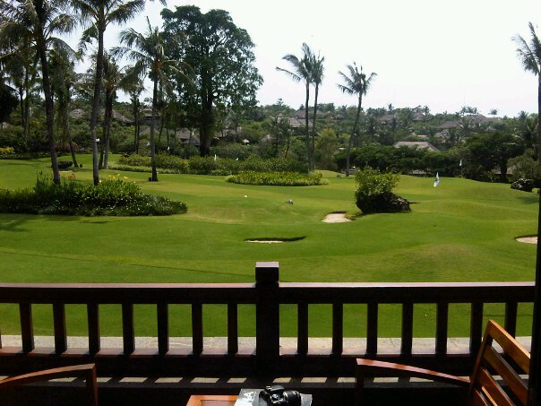 Begitu sampai di Ayana kami di sambut dengan kalungan bunga dan welcome drink, kamar kami yang luas dan balkoni yang menghadap ke padang golf hijau membuat kami serasa di surga.